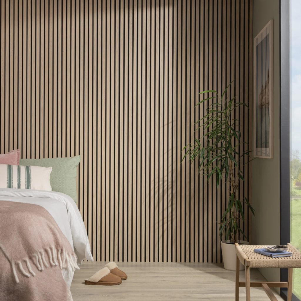 Riflaj MDF decorativ 2HOME de tip Panou Acustic, Stejar Natur, 270×60 cm
